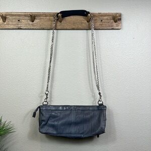 Soft elephant gray (blue tone) colored leather bag. Chunky chain strap.