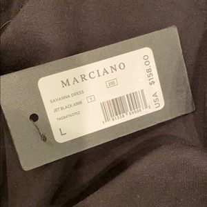Marciano long sleeved Black dress never worn, thicker material. Cut Bow tie in front of neckline. Shorter dress depending on height and curves.