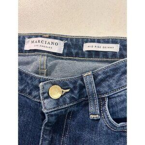 Stylish Marciano Los Angeles mid-rise skinny jeans for women, size 28, in classic blue denim.