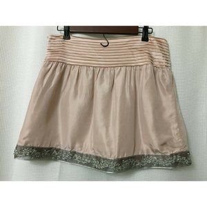 Marciano Mini Silk Skirt Size Medium Blush Color Pleated Waistband Sequin Hem
