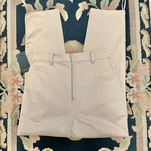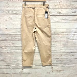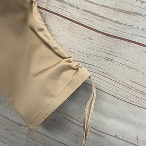 straight, slightly tapered legs with cinch/drawstring at ends/bottom