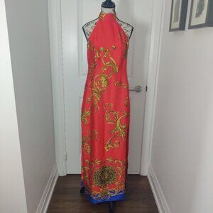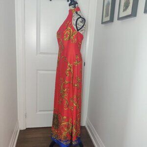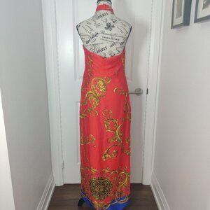 Marciano Red Halter Maxi Dress with Gold Accents | Wedding Guest | Size 10