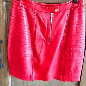 Beautiful Marciano bright red mini skirt with cutouts. Size is XS. 100% lamb leather. Worn once on stage, in excellent used condition. Gold details in back. Slight discoloration on front waistband from hangar (see pix), may clean off.