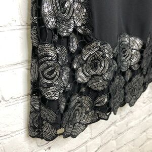 Marciano Black Shift Dress Tunic Silver Sequin Rose Detail