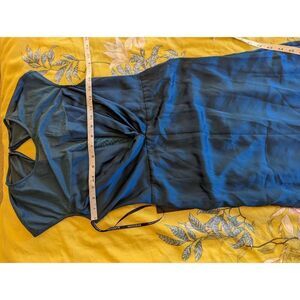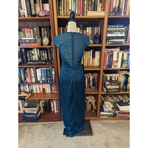 Marciano Sheena gown majolica blue illusion neck deep v satin evening maxi nwt