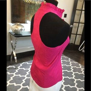 Gorgeous Marciano Halter top. Fabulous stretch fabric hugs your curves in all the right places. Vibrant eye catching pink color. Beautiful Ruffle detail in the bust. Perfect summer top!