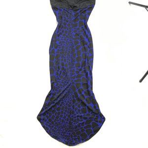Gorgeous! Marciano High Low Stretchy Halter Rushed embellished Animal Print Dress S/P. 100% Silk, lining silk. This dress is to die for! Gorgeous Cobalt and Black animal print, Lined. Excellent condition - like new! No Flows! Measurements lying flat: Chest flat 16", waist 13", front length 27" - start from chest, back length from chest line 46"