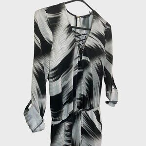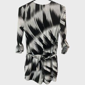 Marciano Tie-Waist Romper White/Black Abstract Print Roll-Tab Sleeves Size 0