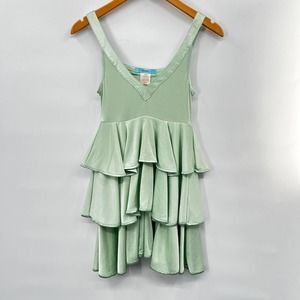 Marciano Vintage 90's Tiered Ruffle V-Neck Dress in Mint Green Size XS
