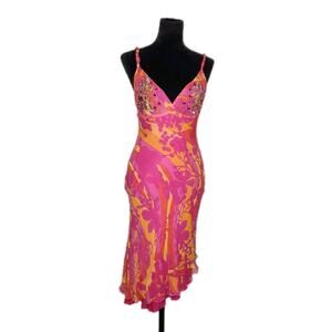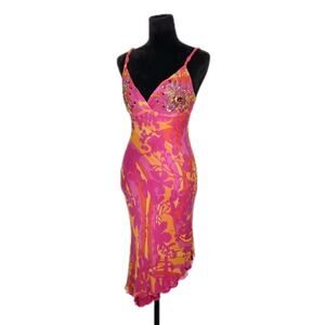 Marciano Vtg Y2K Embroidered Sequin Silk Dress Assymetrical Multi Size Small