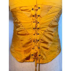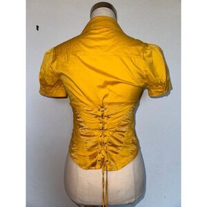 Marciano Women's Yellow Button Up Short Sleeved Corset Blouse Ribbon Tieback XS