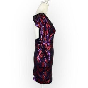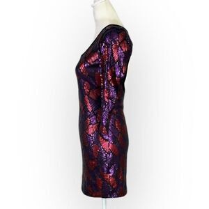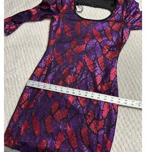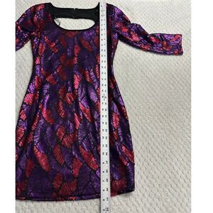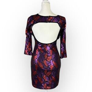 Marciano Bodycon Dress Women's XS Purple Red Sequin Mini Open Back 3/4 Sleeves