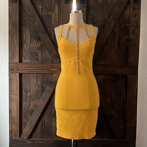 Marciano yellow mini bandage dressSz- Med