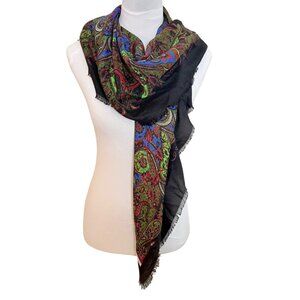 Marco Corsari scarf, paisley print scarf, black shawl, multicolor wrap, large fringed scarf, lightweight shawl, women's accessory, cotton scarf, polyester scarf, fashion scarf, designer scarf, versatile scarf wrap, vibrant paisley shawl, scarf, paisley, fashionaccessory, neckscarf, colorfulscarf, bohostyle, fashion, style, accessories, scarfstyle, peacock