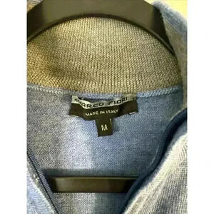 Marco Fiori Sweater Blue Extra Fine Merino Wool 1/4 Zip Men’s M