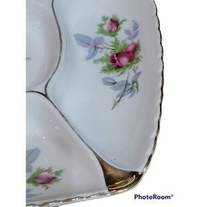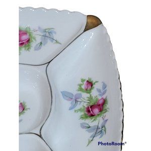 Marco Japan Divided Dish Porcelain Candy Trinkets Roses Scalloped Gold Trim Vtg
