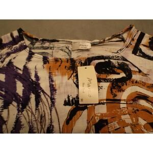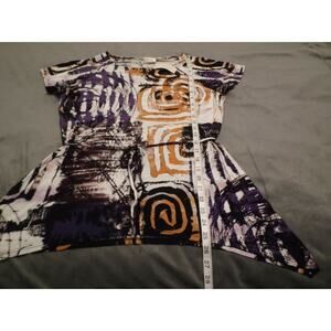 Marco New York Knit Top Women's M Multicolor Print Short Sleeve Tie Belt Tunic