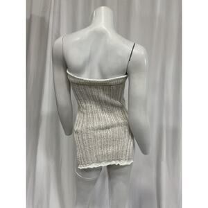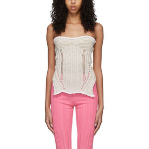 Marco Rambaldi White Cotton Tank Top Size S: rib knit and open knit, cotton and linen-blend top, square neck, vented, side-seams.