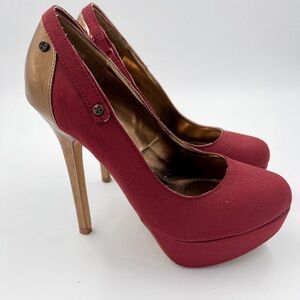 Marco Santi Red and Gold Closed Toe Heels Size 6.5