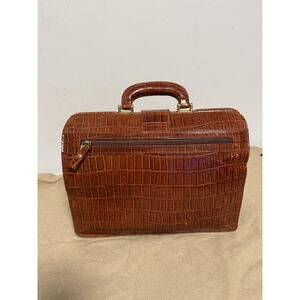 Marco Tadini Croc Embossed Leather Doctor Bag Brown Briefcase Key Made in Italy