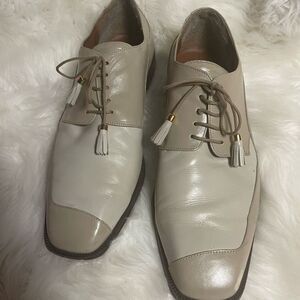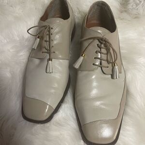 Marco Vicci leather beige and taupe men’s shoes lace with tassel accent SZ13M. Pre owned in good used condition a small scratch on the side front toe area.see all pictures any questions please message.B3