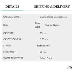 Marco Villari Olivia Yolako 35mm watch with Rose Gold Sparkle Quartz dial, brand new in packaging. Made of brushed gold stainless steel, 20mm Rose leather strap, and it's splash-proof. Deals for bundles. Trades considered.π¦ Fast Shipping. Pickup is available. π Thanks for looking and have a great day!