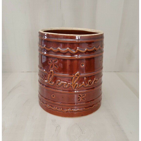 Marcrest Daisy Dot Stoneware COOKIE JAR Colorado Utensil jar Brown 8" No lid
