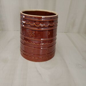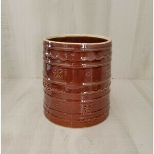 Marcrest Daisy Dot Stoneware COOKIE JAR Colorado Utensil jar Brown 8" No lid.