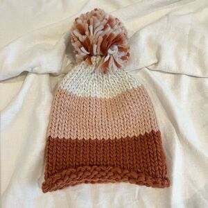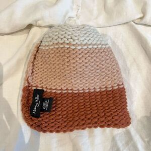 Marcus Adler Chunky Knit Colorblock Rustic/Blush Pink Beanie Hat w Pom