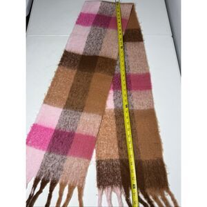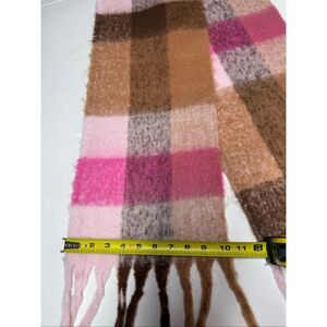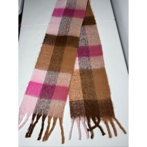 Marcus Adler Oversized Fluffy Plaid Scarf 10” X 72” Pink Brown