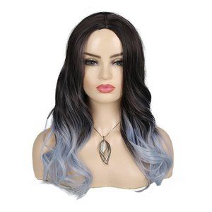 Marda Wigs Curly Wavy Synthetic Ombre Blue