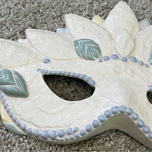 Mardi Gras Adult Face Mask Wall Plaque Iridescent White Soft Blue Painted FLAW