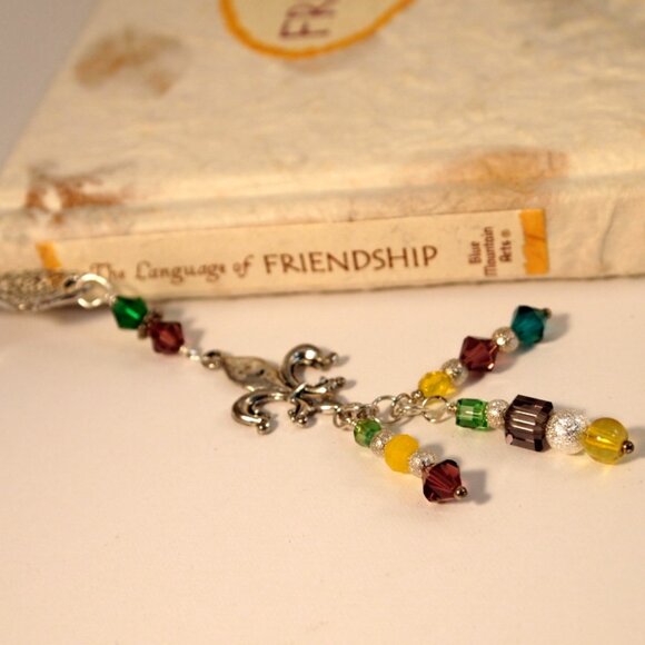 Fleur De Lis Bookmark Mardi Gras Bookmark Dangle Beaded Phoenix Tail Page Saver Office Gift Teacher Gift Reader Gift Book Lovers Gift.
