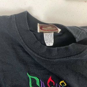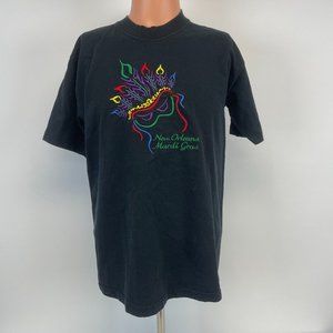 Mardi Gras Masquerade Mask Embroidered T Shirt Vintage 90s Made USA Black L