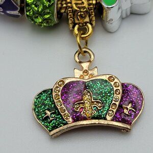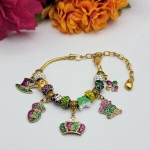 Mardi Gras Multicolor Enamel Charm Bracelet Gold Tone Adjustable 10"