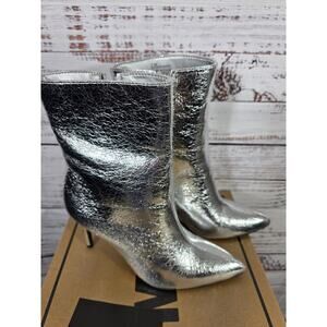 Mardi Silver Crinkle Metallic Dress Bootie by Mia 3.5" Heel NIB