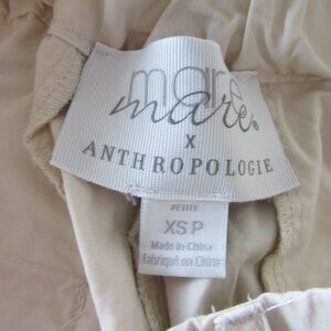 Mare Anthropologie Cream Wide Leg Curved Hem XSP Front Pleat Pockets Pants