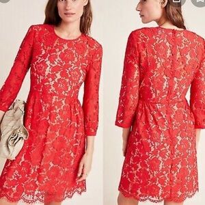 Mare Maer Anthropologie Persephone red lace mini dress, with nude lining