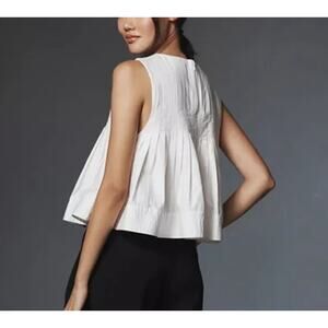 Mare Mare x Anthropologie Pleated Structured Swing Tank Top in White Size L NWT
