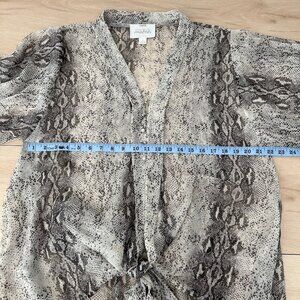 Pre-owned, gently used Mare Mare x Anthropologie Puff Sleeve Grey & White Python Print Sheer Blouse in size large. No marks, stains, or flaws. Excellent pre-owned condition for this airy, feminine blouse.