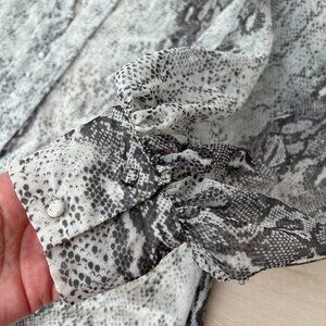 Mare Mare x Anthropologie Puff Sleeve Grey & White Python Print Sheer Blouse (L)