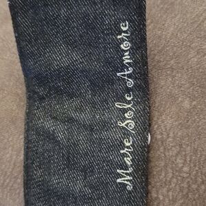 Mare SOLE AMORE Artisan Denim Floral Beadwoven Rhinestone Wide Bracelet