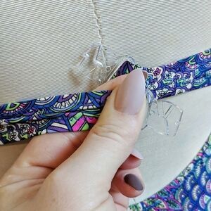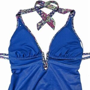 Updating a classic one-piece with on-trend style, this Maríe Meili Neptune swimsuit features a bold pattern & center-tie design with a metal V detail. An inset band flatters the figure, while tummy & thigh slimming quick-dry fabric offers all-day comfort & support. Halter neck ties behind the back, another band lies beneath the breasts & closes with a clear bikini clasp. Removable soft pad cups. 80% polyamide 20% elastane. Very slimming! NWOT, SF & PF home, ready to ship!
