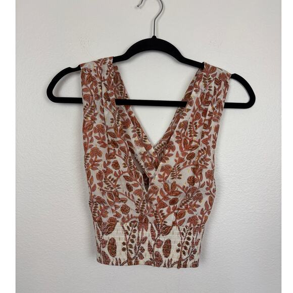 Marea Ash & Eden Smocked Printed Festival Gold Crop Top Medium