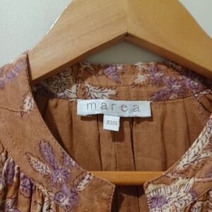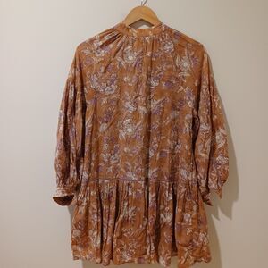 Marea By Liz Joy Brown Floral Cotton Long Sleeve Mini Dress Size XS/S Boho Fall
