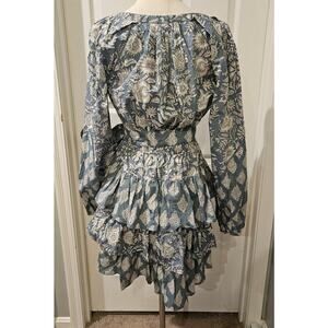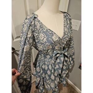 Marea Cotton Cala Azul Grace Ruffle Flounce Long Sleeve Mini Dress Size Medium