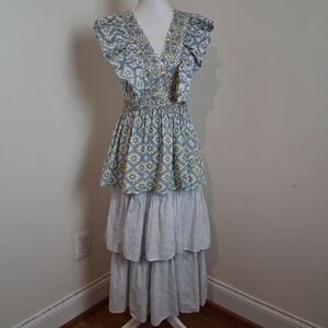 Marea Fiesta Floral Print Tiered Cotton Dress Size XS