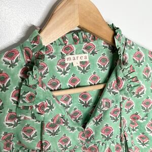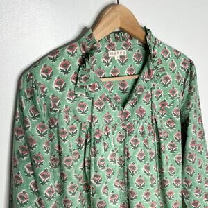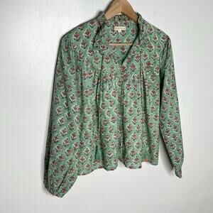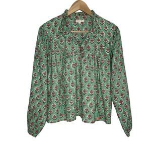 Marea Long Sleeve Georgia Button Up Top Womens Small Green Pink Floral Boho