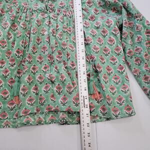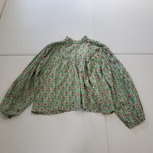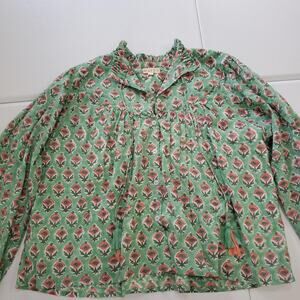 Marea Shirt Womens Small Green Floral Boho Peasant Ruffle Tassel Tie Long Sleeve