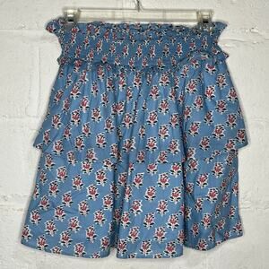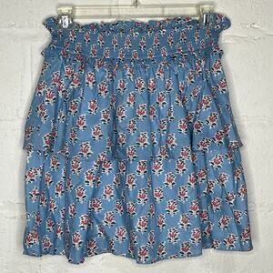 Marea Women's Blue Pink Block Floral Layered Skirt Cotton Smocked Ruffle Large